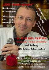 Am Samstag, den 28. März 2026 um 19:30 Uhr ist Wolf FRANK mit seiner Erfolgsshow "UDO - heiter serviert" im VAZ Tulbing zu sehen!